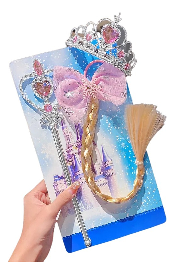 incluye corona material en pasta, cetro y trenza accesorio cabello sintético.